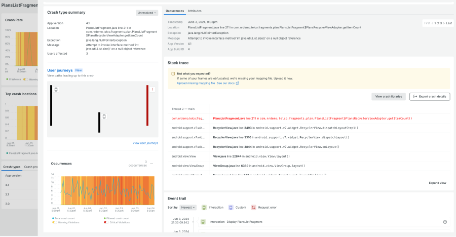 You can now quickly access an extensive overview of every user interaction preceding a crash with New Relic user journeys. This enables you to keep track of every stage of the mobile user journey and identify and address issues more quickly, preventing any interruptions before they negatively impact the user experience.