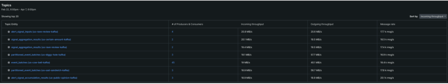 Once enabled, the ability to flow from the Queues and Streams capability into the Kafka for APM experience is as simple as selecting the topic entity that needs to be investigated.